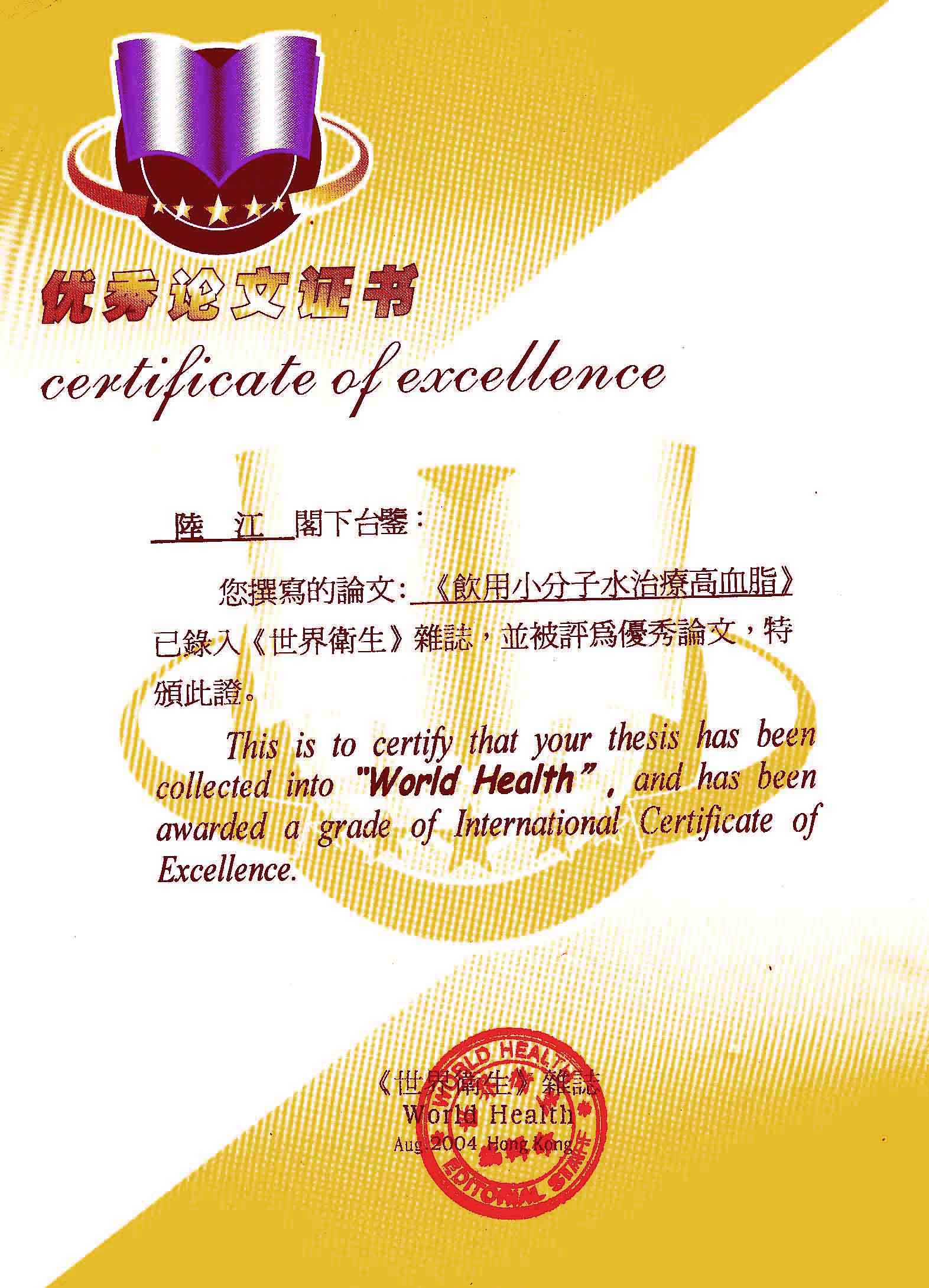 一、創(chuàng)造了在家在職場使用方便的微小分子團水器具。在世界上首先用此理療方法,大規(guī)模地成功地逆轉和消除動脈粥樣硬化,確實祛俆高血壓和冠心病與糖尿病,使患者恢復動脈和心臟及胰島的健康,可消除因細胞缺水使器官衰弱而形成多種器官的缺水性病癥,并使健康人可預防和減緩動脈粥樣硬化,減少心腦血管病,具有重大的社會經濟和戰(zhàn)略意義。